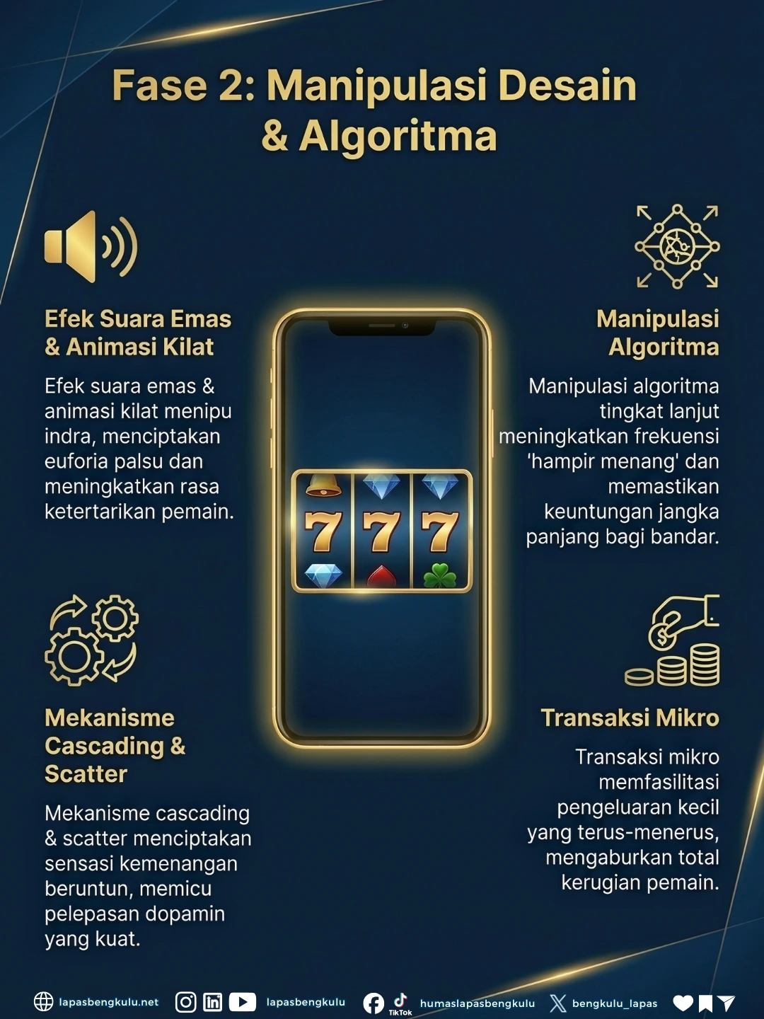 3.      Dorongan Dopamin: Kemenangan kecil yang sering sengaja diatur agar pemain merasa "sedikit lagi menang besar," yang memicu hormon kepuasan di otak.