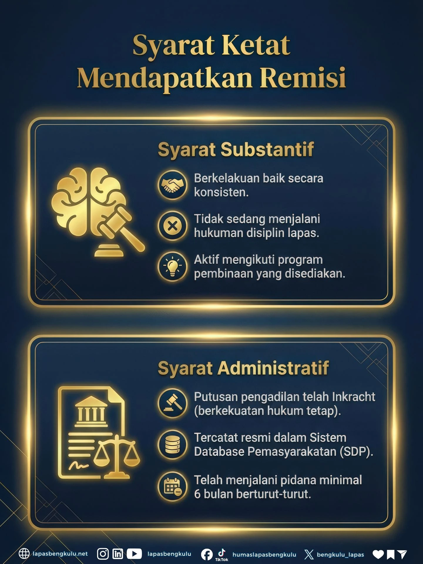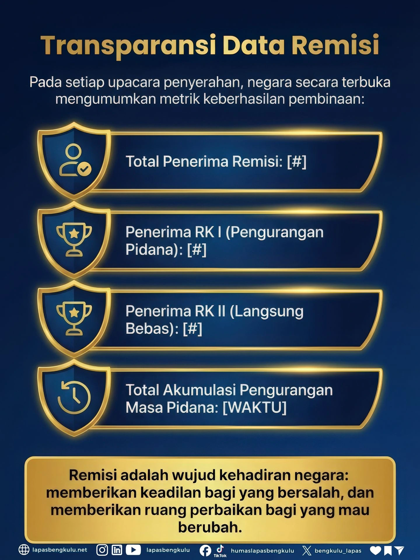 Pemberian remisi merupakan hak warga binaan yang diatur dalam Undang-Undang Nomor 22 Tahun 2022 tentang Pemasyarakatan, sekaligus menjadi motivasi agar mereka terus memperbaiki diri selama menjalani masa pidana.