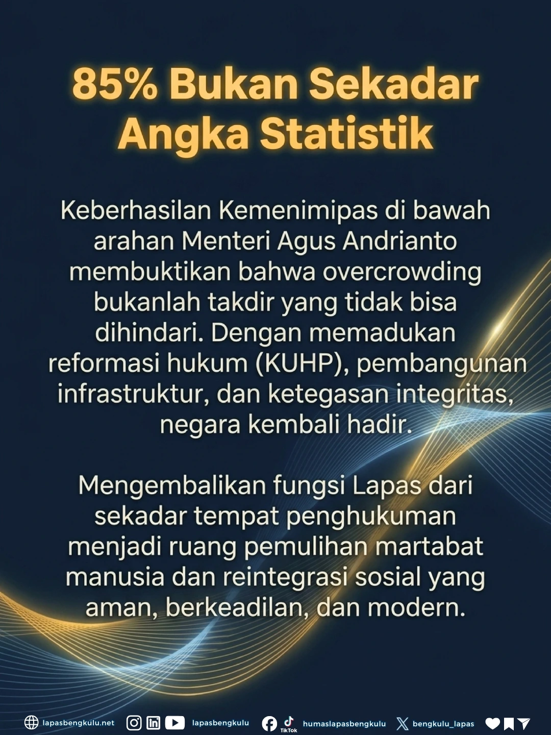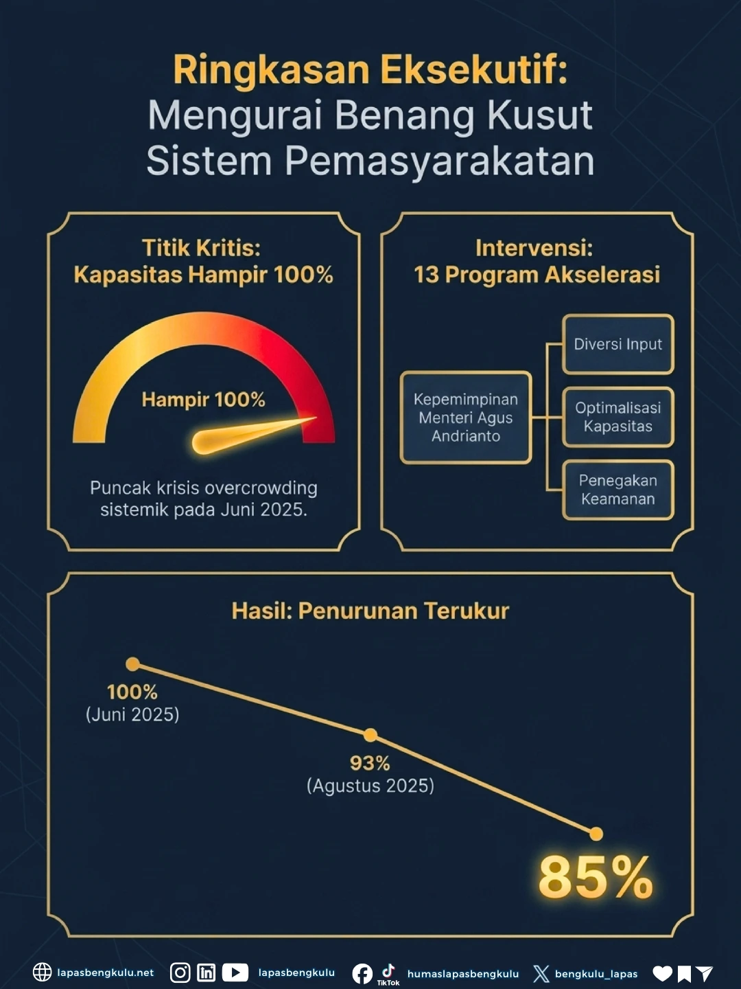 Ruang yang lebih lega untuk pembinaan yang lebih optimal! ✨ Upaya strategis dalam menekan kepadatan membuahkan hasil signifikan dengan penurunan angka overcapacity nasional hingga mencapai 85 % per April 2026,.
