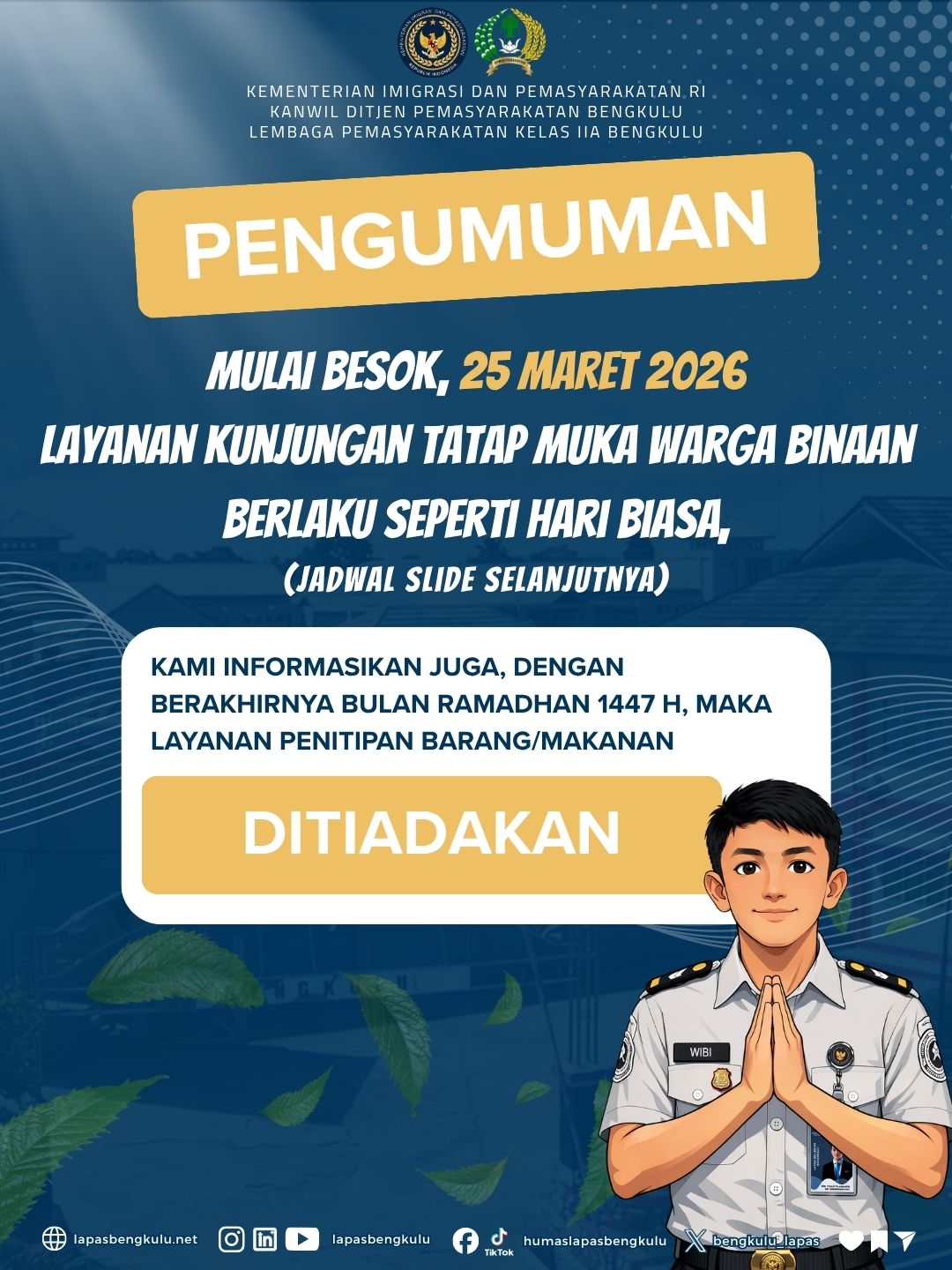 📢 INFORMASI LAYANAN KUNJUNGAN Lapas Bengkulu