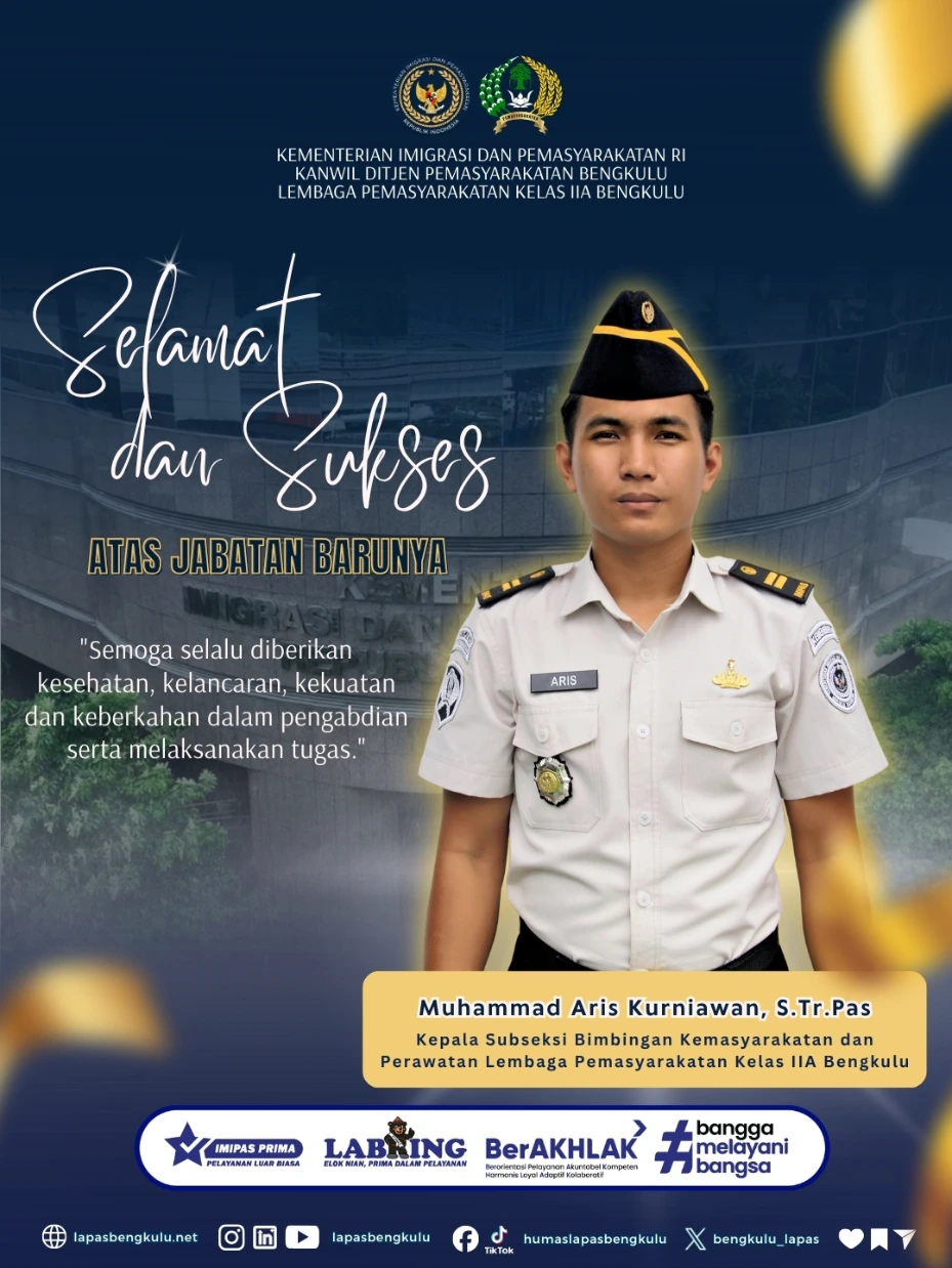 atas jabatan barunya sebagai Kepala Subseksi Bimbingan Kemasyarakatan dan Perawatan Lembaga Pemasyarakatan Kelas IIA Bengkulu