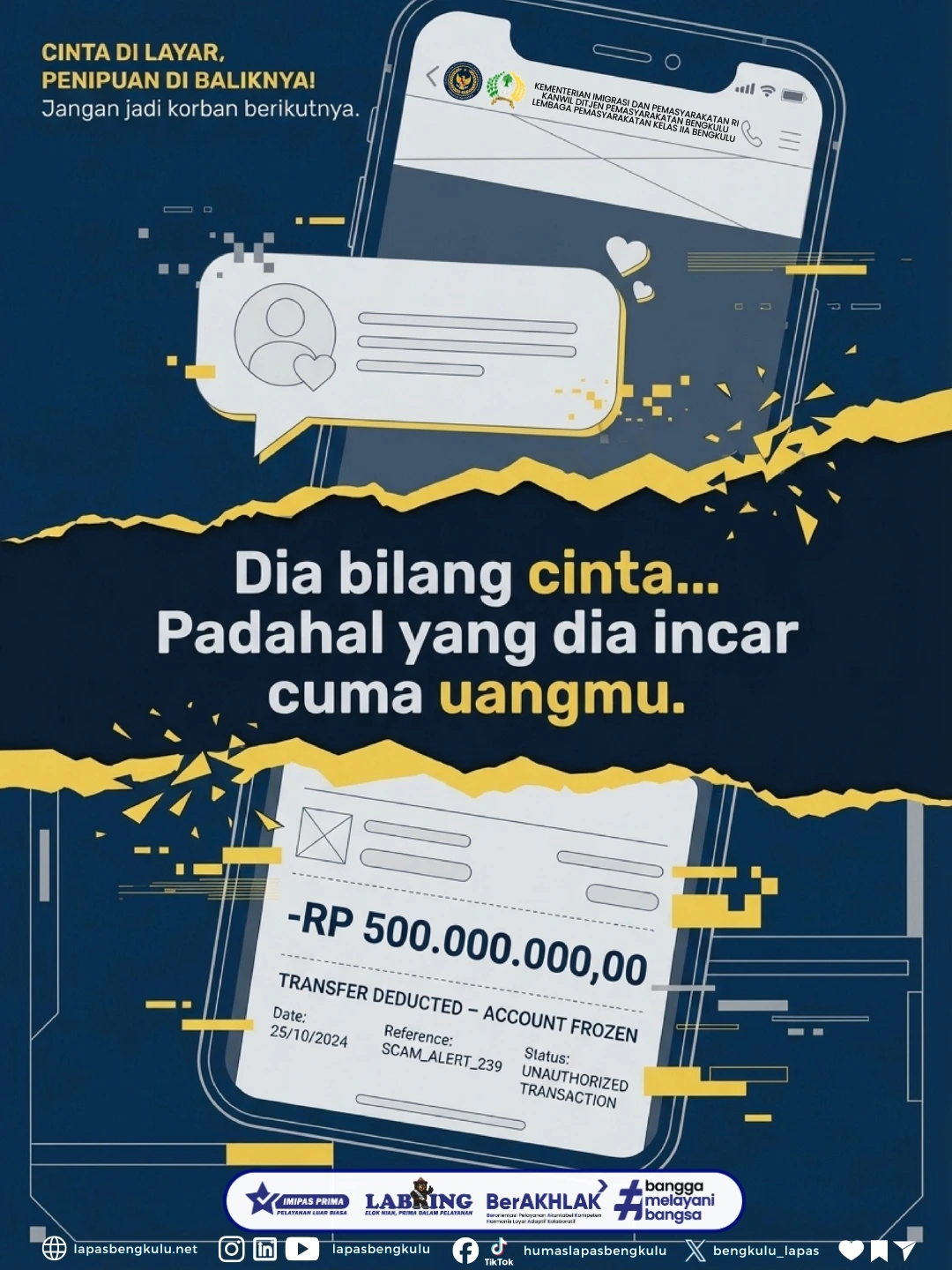 #WaspadaLoveScam #StopPenipuanOnline #KejahatanDigital #BijakBersosialMedia #EdukasiMasyarakat #LawanPenipuan