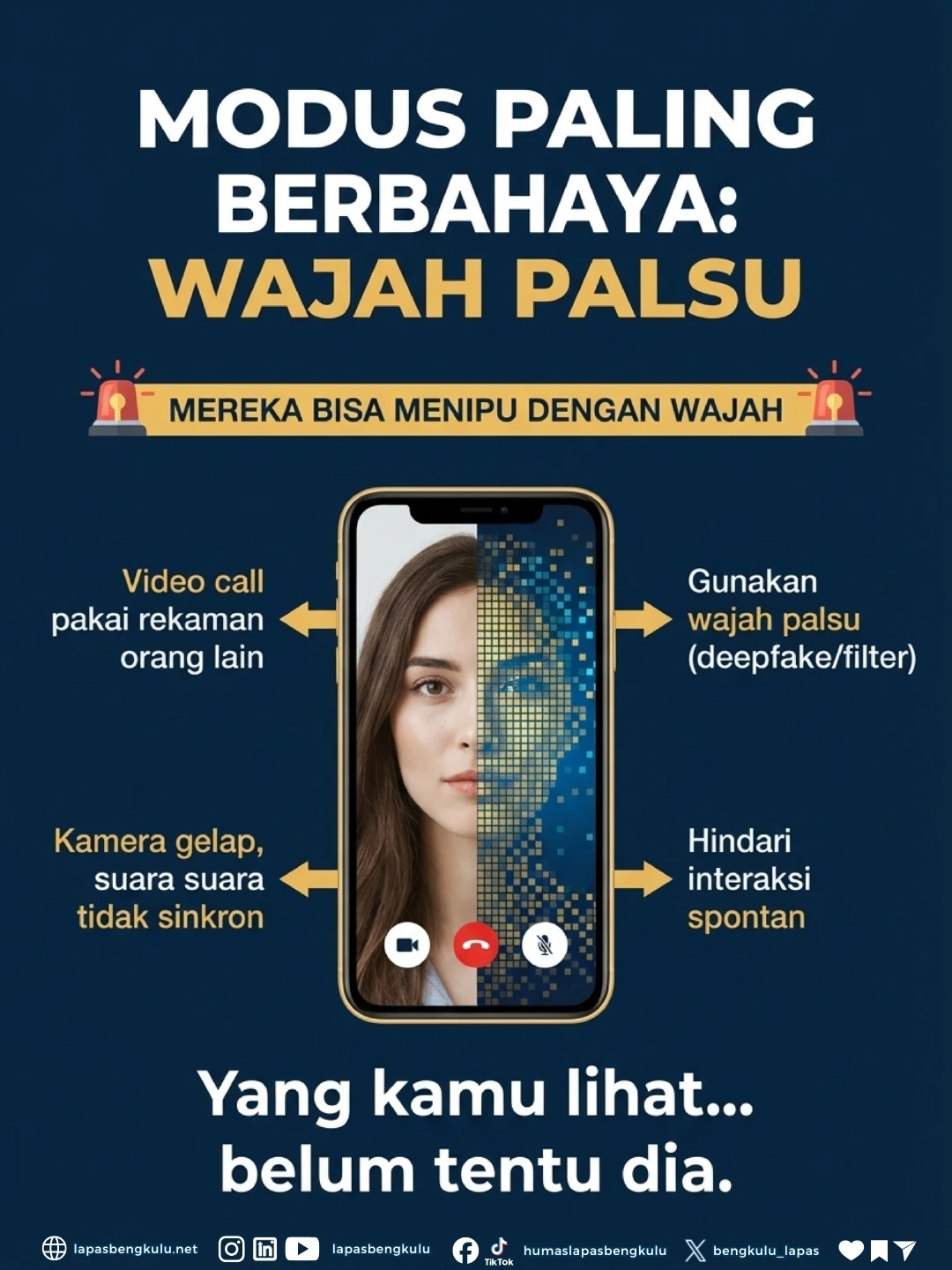Sekarang pelaku bisa pakai foto orang lain, bahkan video call dengan wajah palsu (deepfake/rekaman).